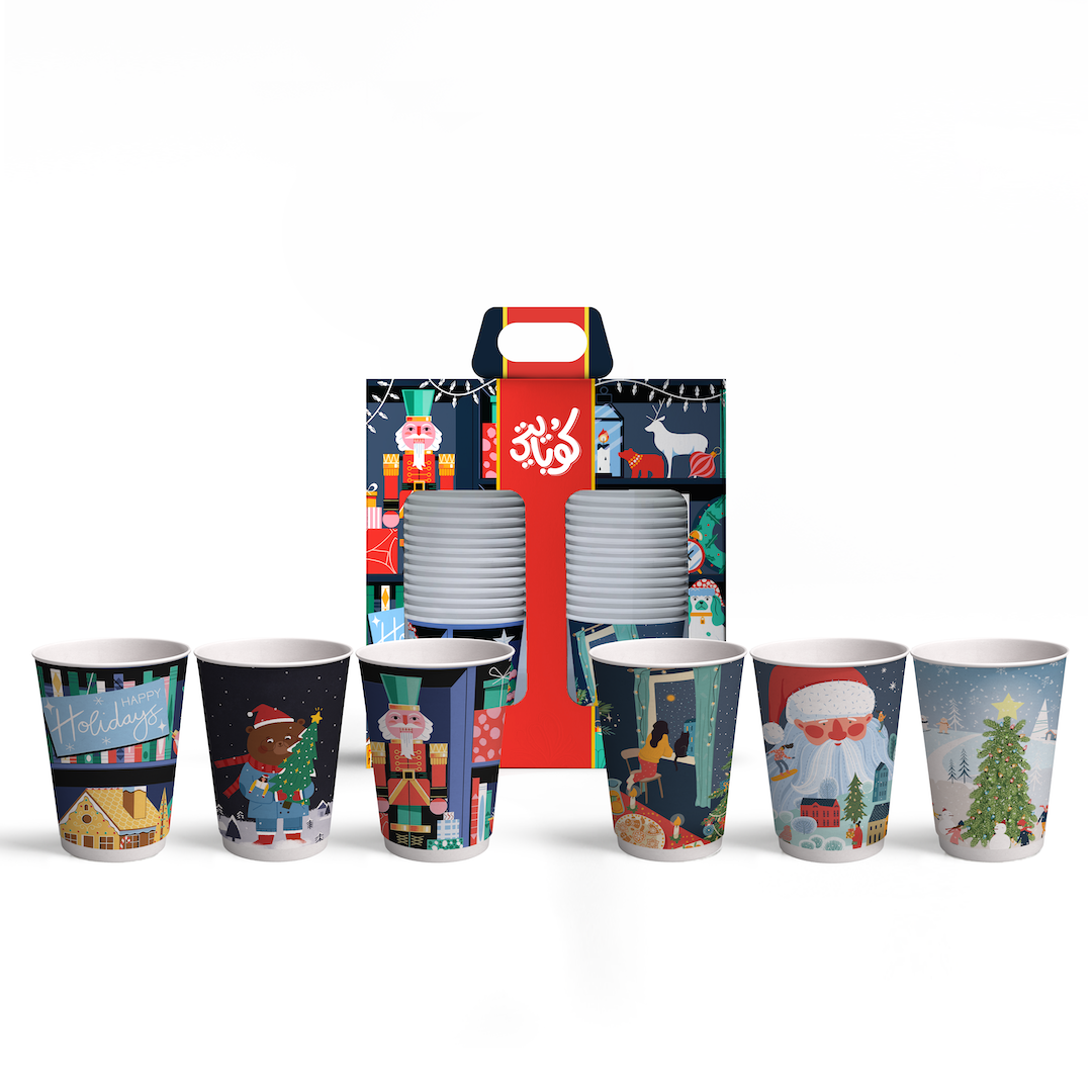 ٢٠ كوب ورقي دبل - ٨ اونصة - مجموعة فروستي كل عبوة تحتوي على ٦ أشكال مختلفة كوب ورقي مصنع من أجود الخامات مع خاصية عدم التسرب وبأحدث التقنيات والتقنيات الحديثة المستخدمة في صناعة الورق